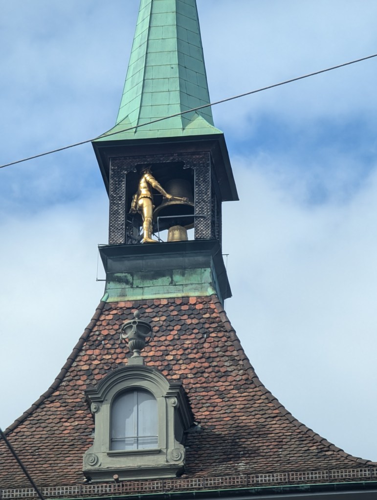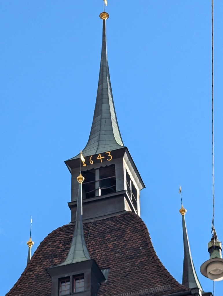 Finally we climbed the last 90 steps up to the roof. The main spire was built between 1765 and 1770. In the mid 1800s it almost buckled from the weight; a metal rod was inserted for stability.