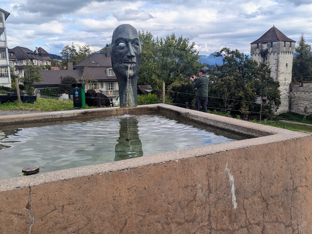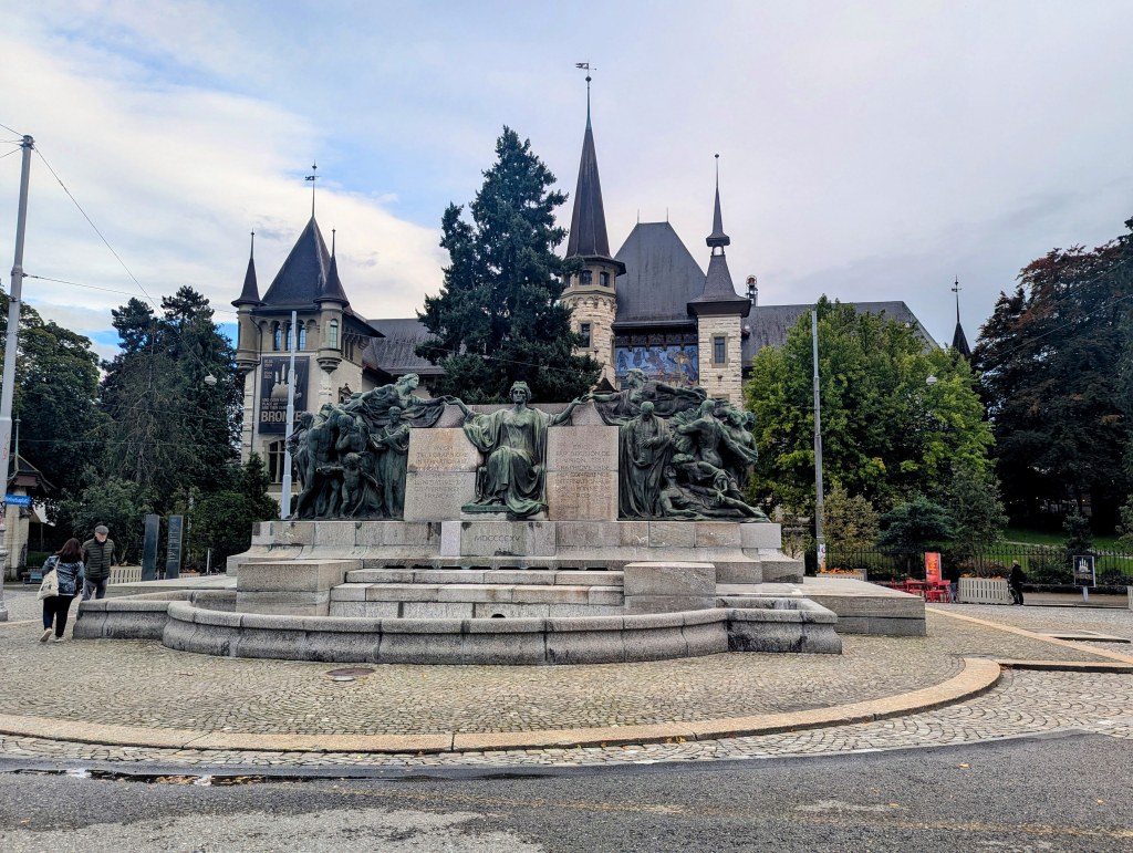 Here we found a statue of Volta. Alessandro Giuseppe Antonio Anastasio Volta ( 1745-1827) was an Italian chemist, physicist, inventor of the first electric generator, discoverer of methane gas, and inventor of the Voltaic Pile, the first electrical battery. He was born and lived out his last days in Como. The monument to Volta was erected in Como in 1838. Volta stands atop the high pedestal in a toga. His left-hand holds a book. The right-hand rests on the Voltaic Pile.