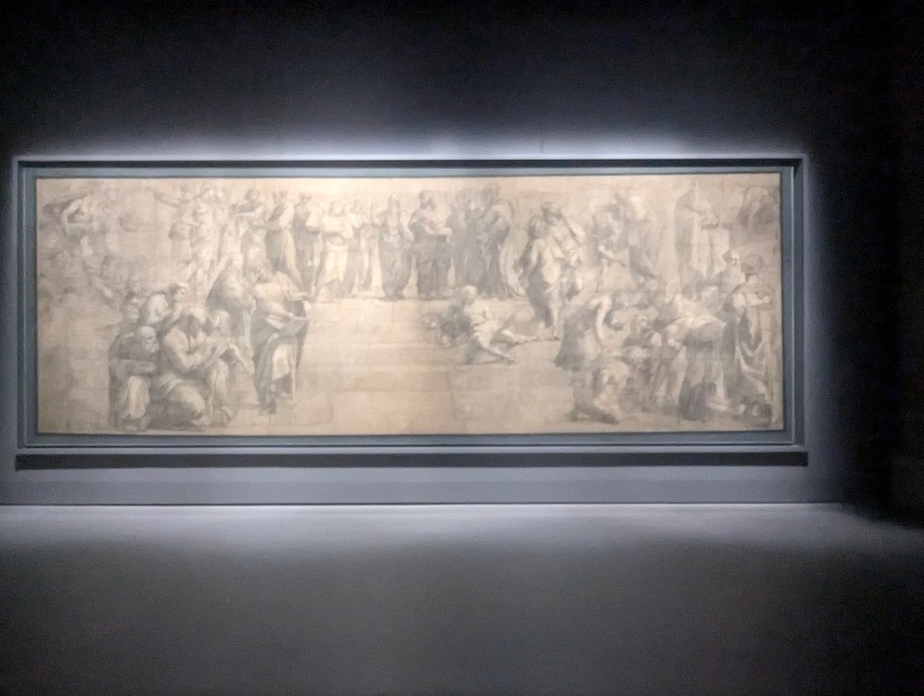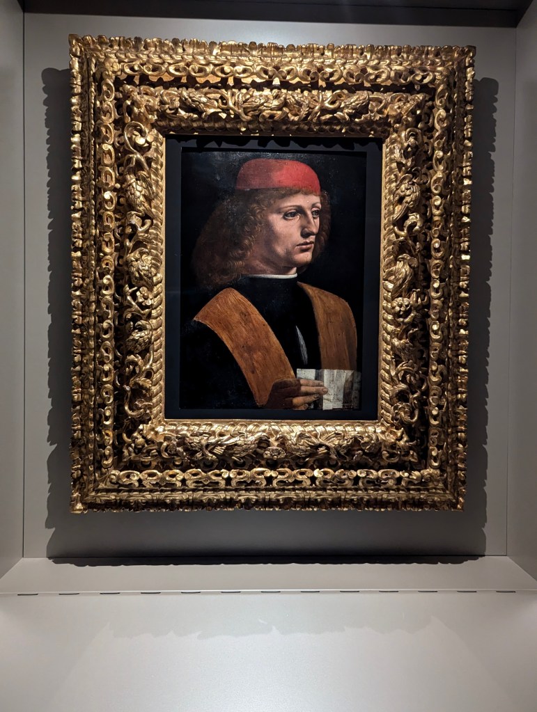 After lunch we mustered up enough energy to return to Biblioteca Ambrosiana. We got audio guides to learn about Federico Borromeo (1564-1631), Cardinal Archbishop of Milan. During his stays in Rome between 1585 and 1601, he developed the idea of a cultural institution of a high artistic, literary and scientific level. He started a collection which has been built upon through the centuries. During the Napoleonic plundering of Italy much of the contents were stolen and transferred to France. Most have since been returned. The first few rooms of the museum contain works obtained by the cardinal himself like this Titian in 1618.