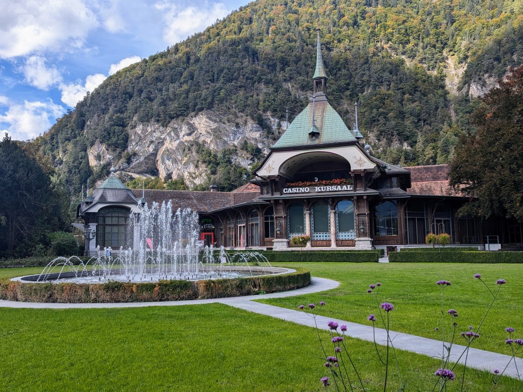 We walked around the castle grounds, but it was getting late, as evidence by the lights starting to come on, and we had a dinner reservation.