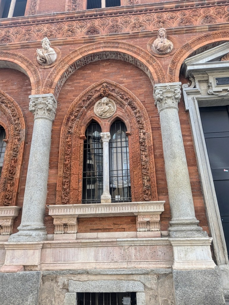 Further along we came to Piazza Cordusio where the court of the Lombard dukes once stood. It was later the financial hub of Milan until the 2010s when the financial institutions transferred to skyscrapers. Today it’s a social and commercial hub.