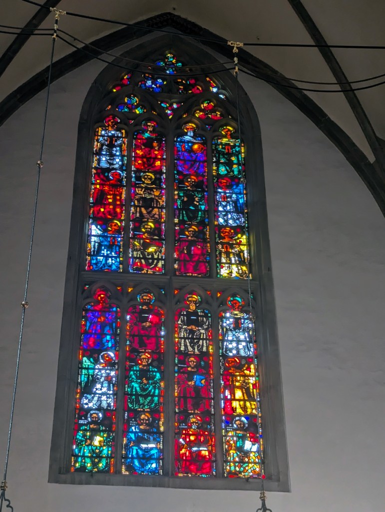 There are 164 large stained glass windows featuring more than 3000 characters. In each of the world wars more than 50 workers removed and wrapped the stained glass windows during the bombardments.