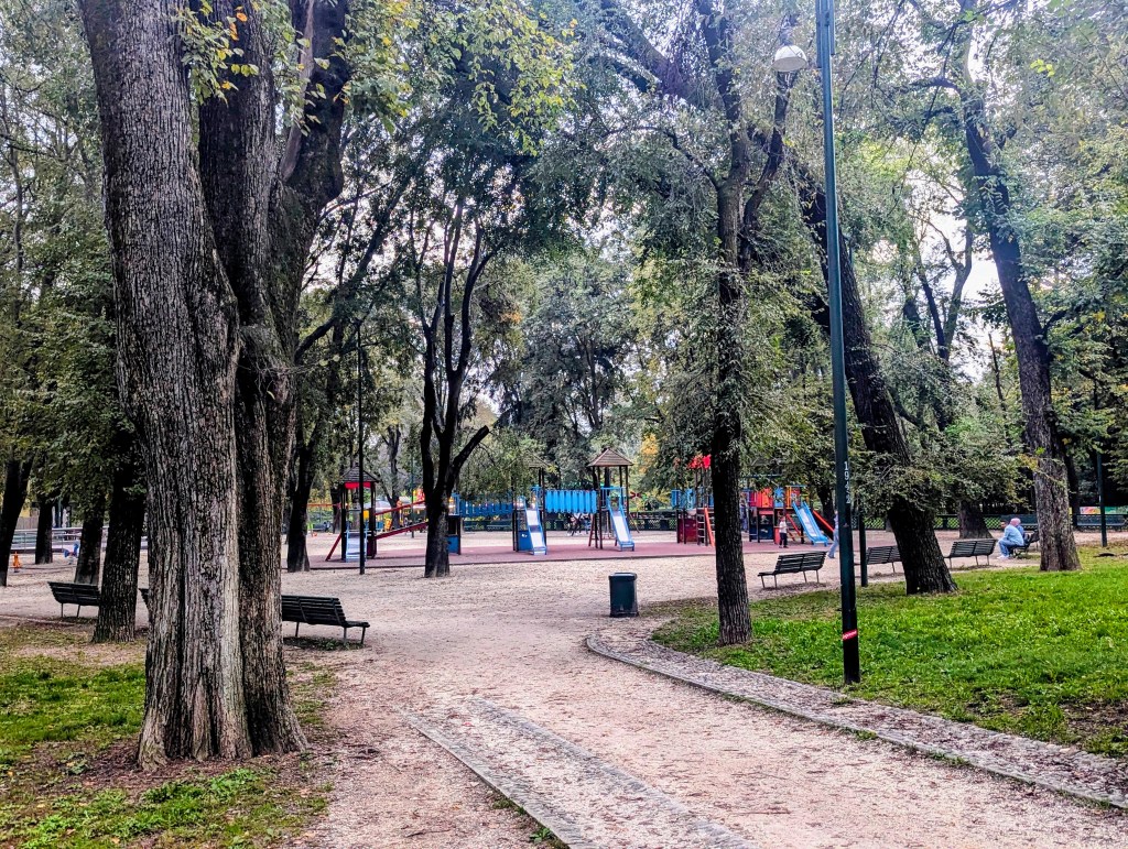 Heading back through Sempione Park, we went a different route and found this playground.