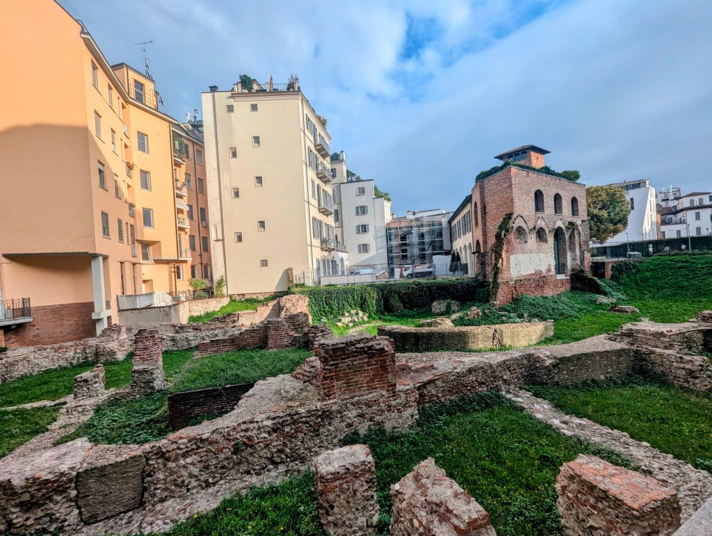 After a snack and a rest, we set out again to see the Castello Sforzesco. Along the way we passed these ancient ruins from the 4th century.