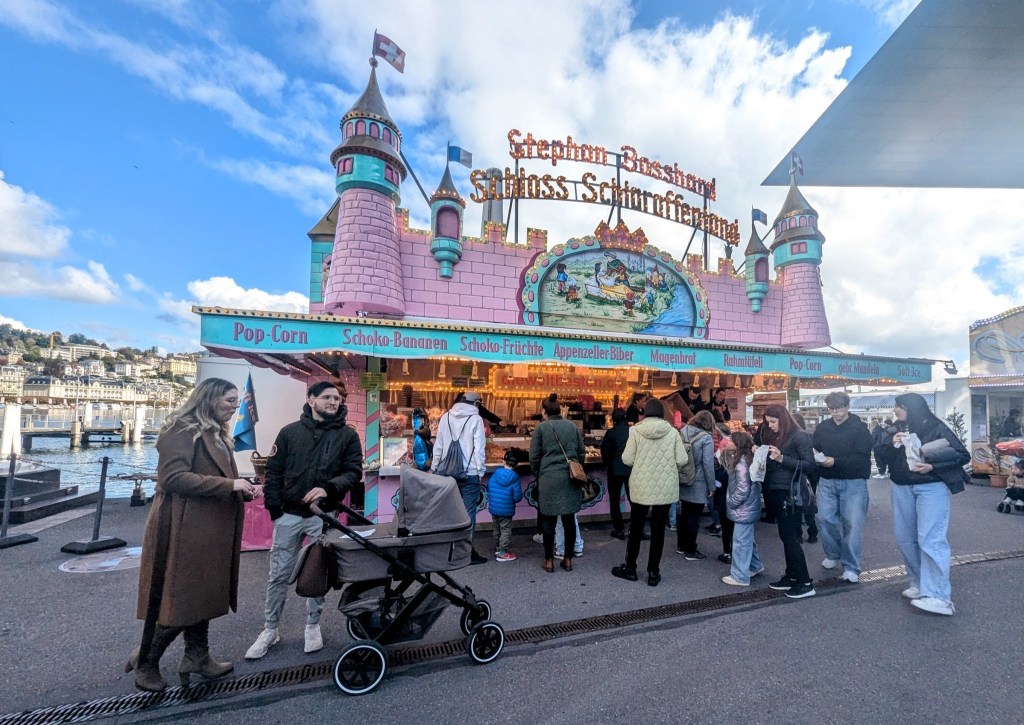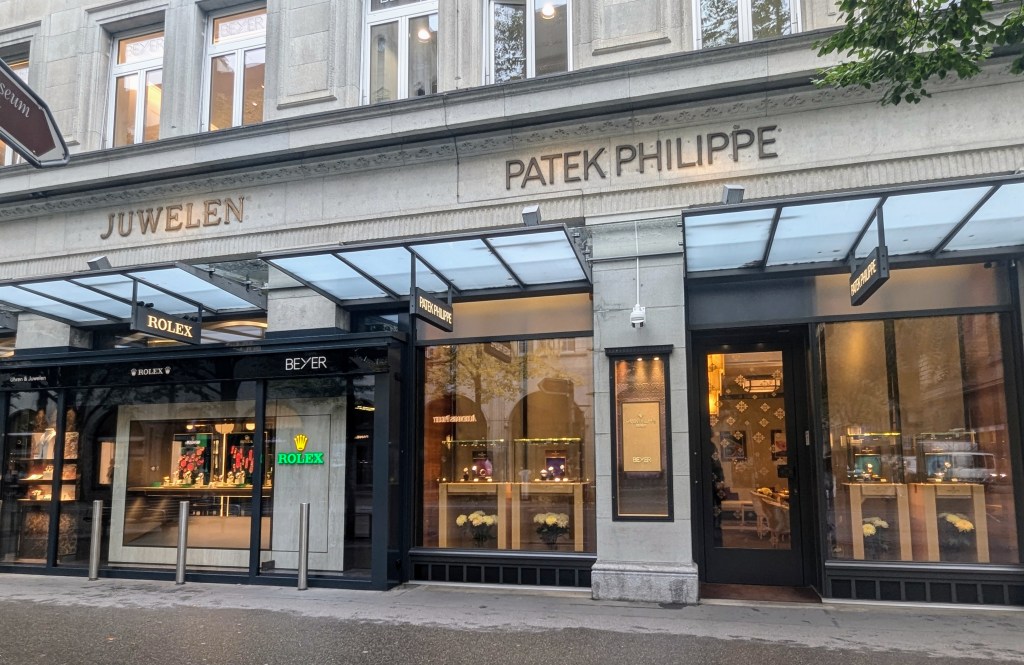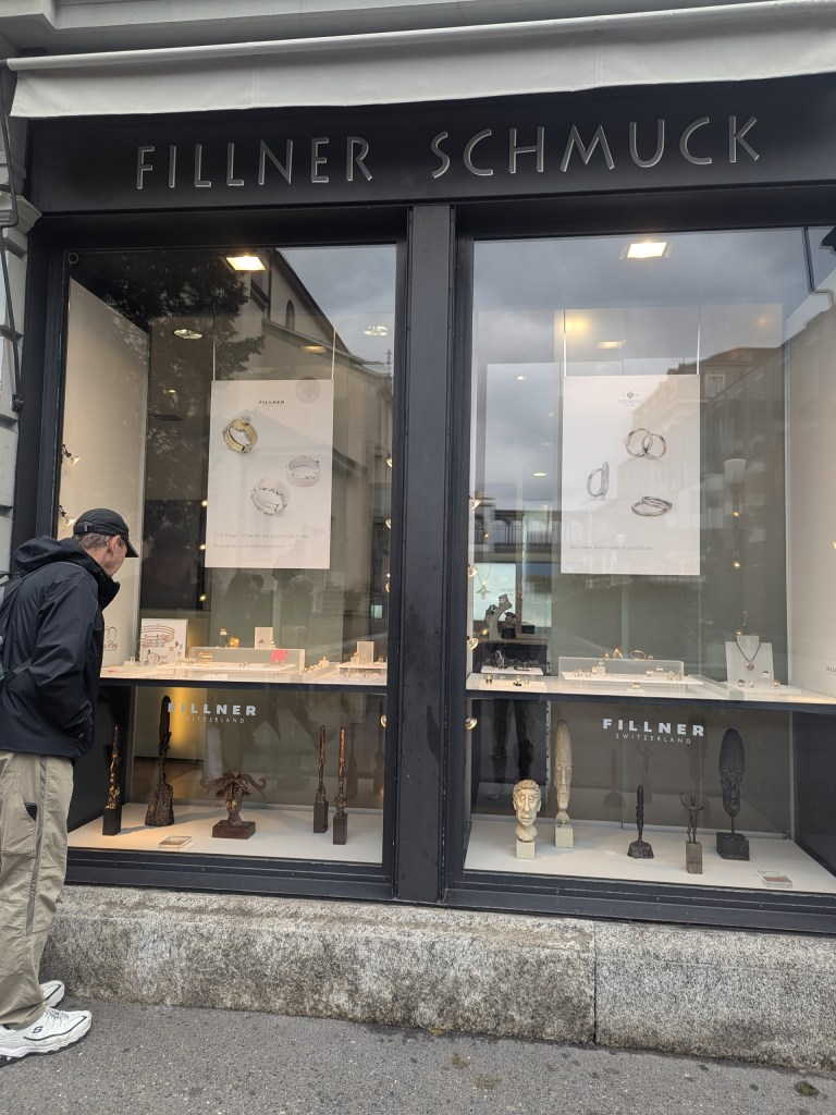 He explained to us that all the central shops are Italian; the French are only on the outer portions of the cross shaped space. All the shops must have uniform signage of gold lettering on black.
