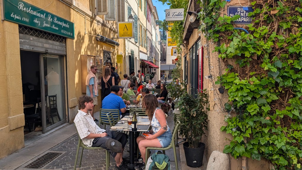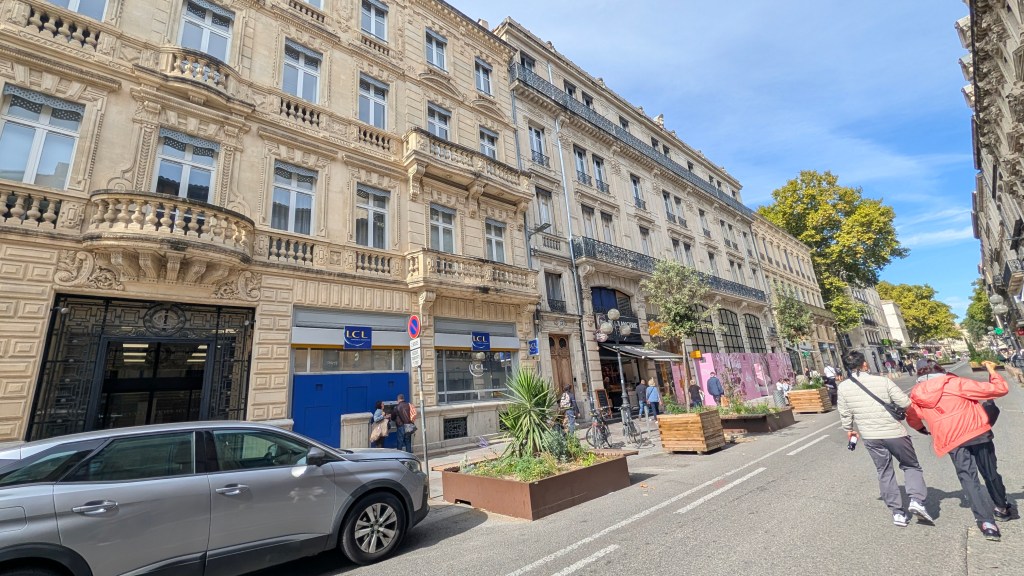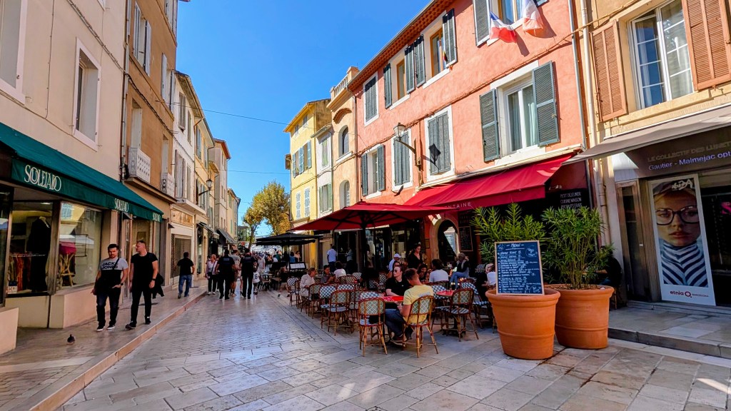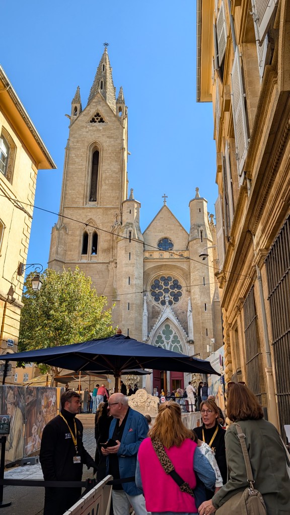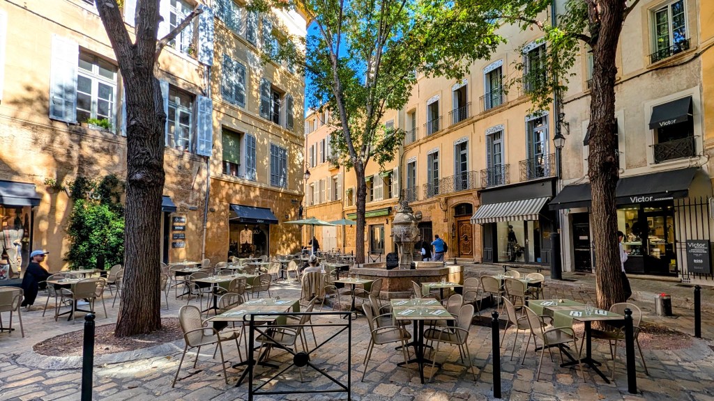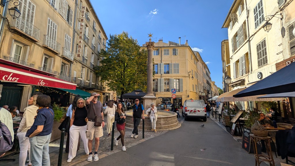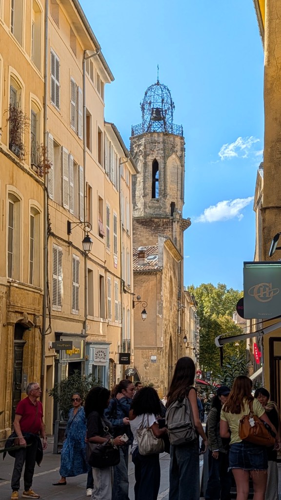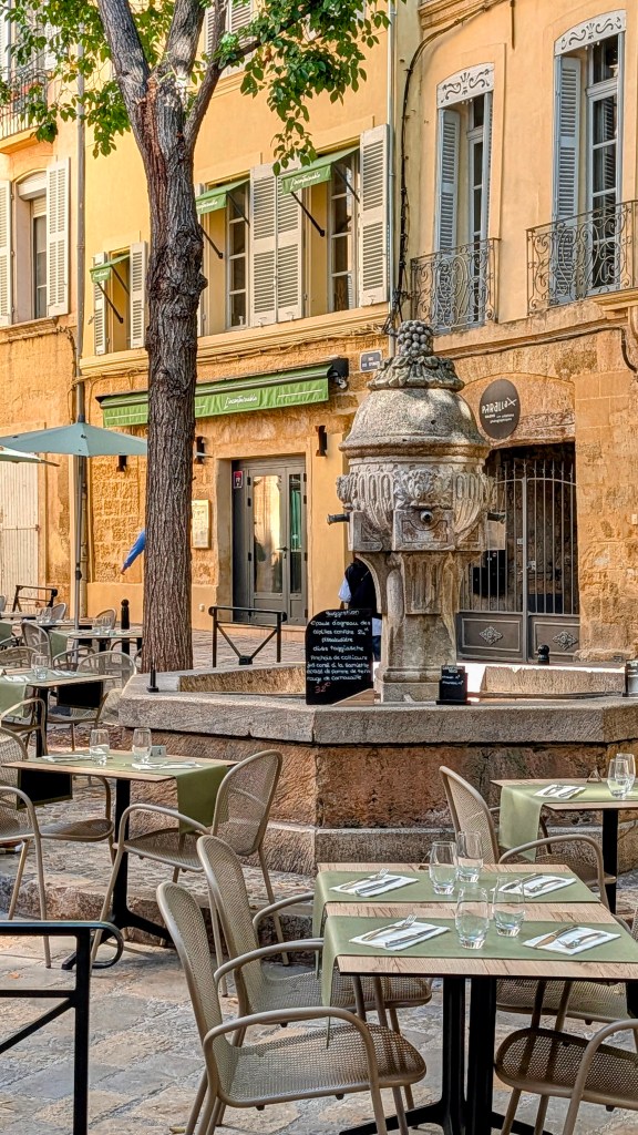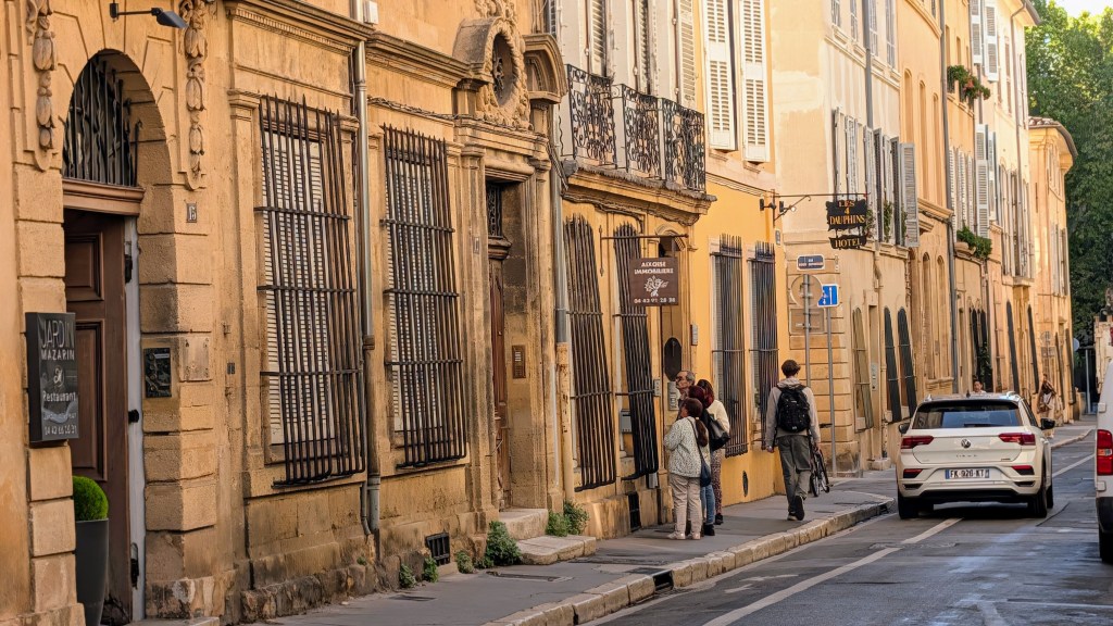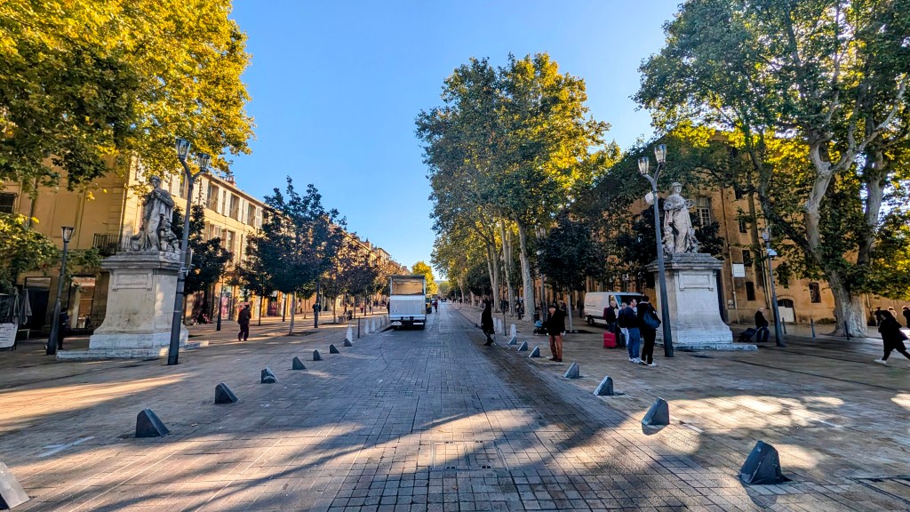 We headed toward Cours Mirabeau, a famous, wide avenue lined with 17th- and 18th-century mansions that divides the old town from the Mazarin Quarter. The street, originally designed in the 17th century for carriage traffic, is now heavily pedestrianized and is known for its grand plane trees, historic fountains, and numerous cafes and restaurants. It is often referred to as the “Champs-Elysées of Provence” due to its popularity as a social hub.