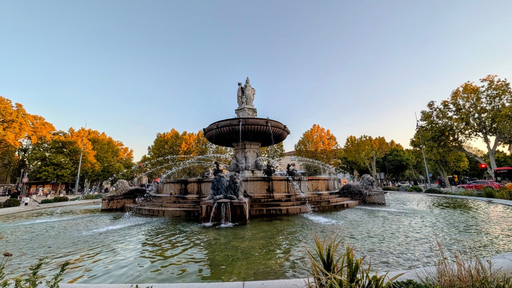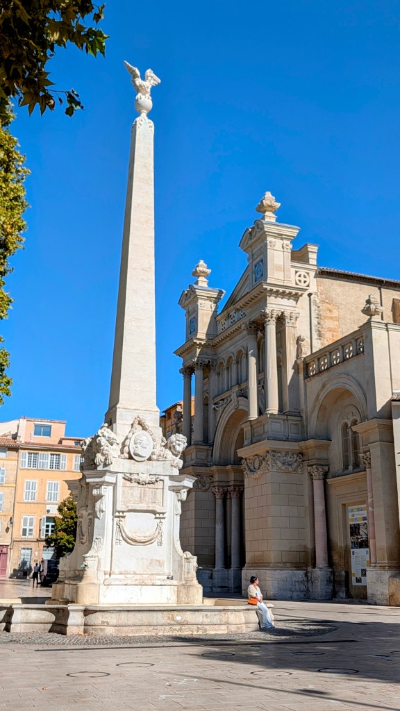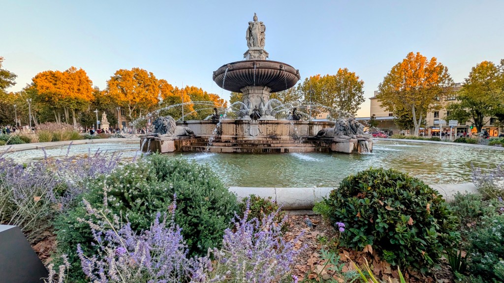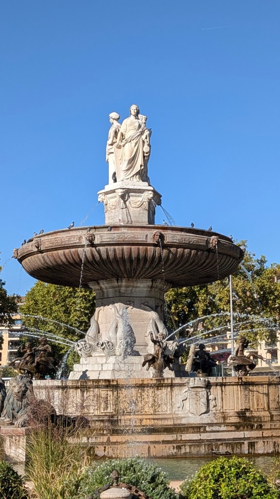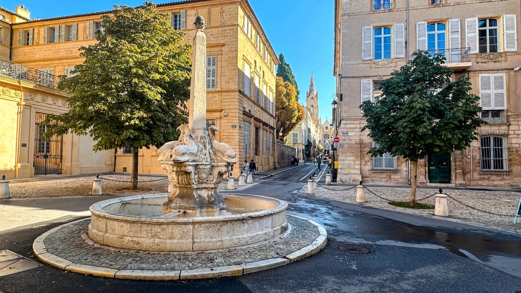 In front of Aix’s imposing Hôtel de Ville stands a charming Baroque-style fountain dating from 1756