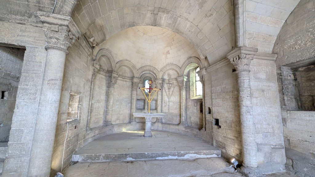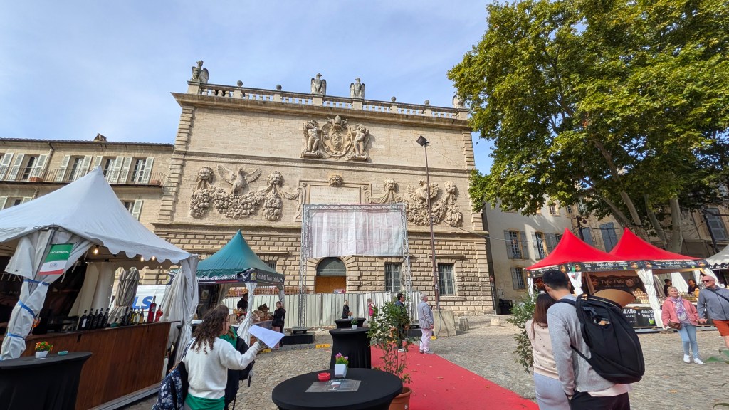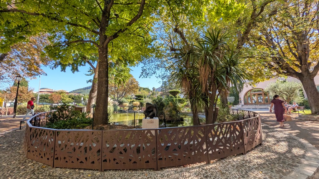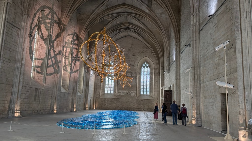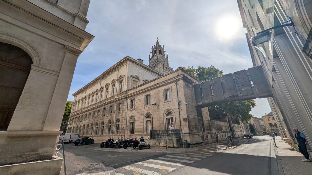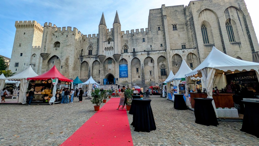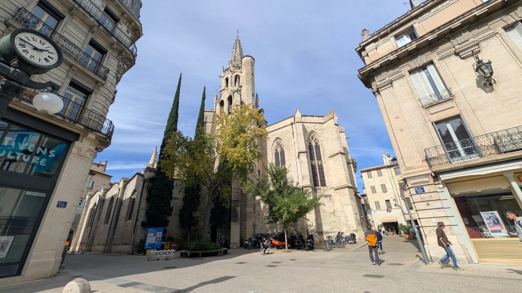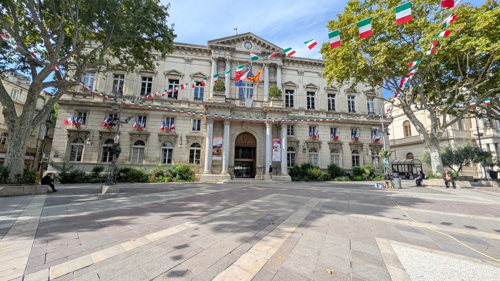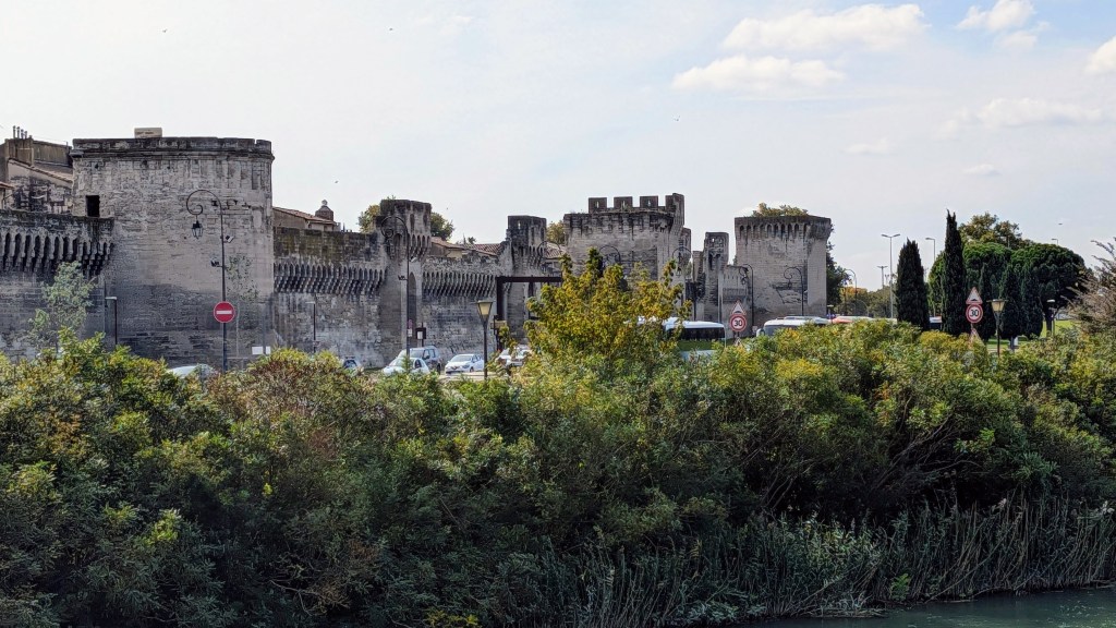 We left Arles early and headed east. On the way we stopped in Avignon, the “City of the Popes,” having served as the seat of the Catholic Church from 1309 to 1377. We parked near Place du Palais (Palace Square) a historic, lively square dominated by the 14th-century Palais des Papes (Popes’ Palace), the world’s largest Gothic palace. Once created by destroying homes to form a defensive “glacis” for the Popes, this UNESCO site is now a hub for cafes, tourists, and the famous Avignon Festival. We stopped for coffee before embarking on our tour of the city,