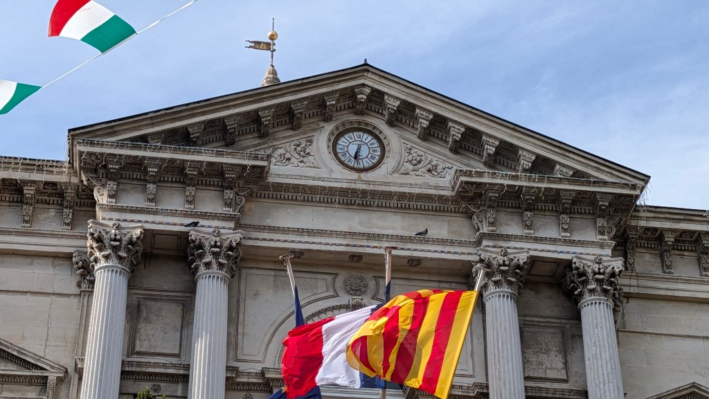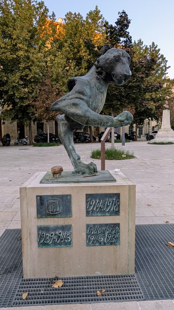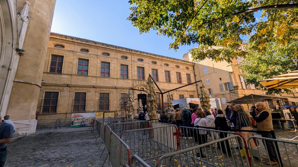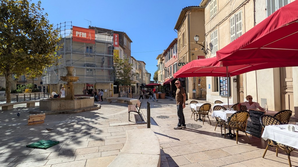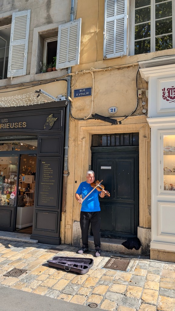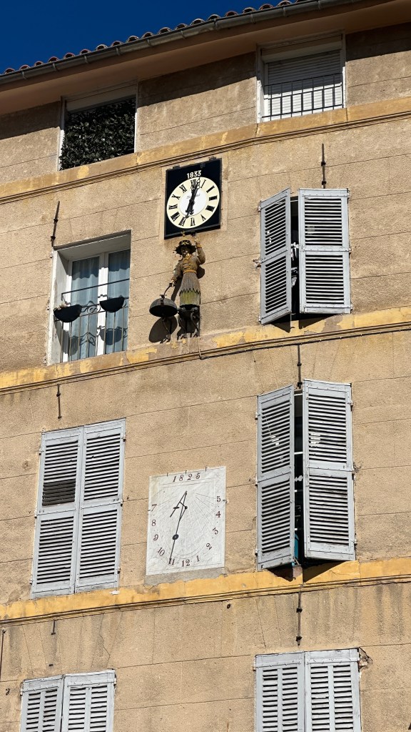 Back in Aix-en-Provence, as we headed into the old part of the city for dinner, we found yet another carousel. What is with the carousels in France? I had to look up the history. Carousels are a common and beloved sight across France, particularly in Paris and other towns like Arles, Avignon, and Aix, due to their deep historical and cultural roots in the country. The word “carousel” is derived from the French “carrousel” (from Italian/Spanish “carosello,” meaning “little battle”), which referred to elaborate equestrian tournaments and parades held by the French nobility in the 17th century. The most famous of these was held by Louis XIV in 1662 in the area of Paris now known as the Place du Carrousel.  These events led to the development of mechanical devices that simulated the experience. After King Henri II died in a jousting accident in 1559, carousels (or manèges) were adopted as a safer way for knights to practice their skills, such as spearing rings, using stationary wooden horses. After the French Revolution, carousels became more accessible to the public, allowing common people to briefly experience the feeling of nobility associated with riding on elegantly dressed horses. This made them widely popular. The late 19th and early 20th centuries were the “golden age” of carousels, with mechanical advances and elaborate craftsmanship, including figures carved by renowned French artisans like Gustave Bayol. These artistic and often unique creations have a lasting appeal. Today, these colorful merry-go-rounds serve as a source of simple amusement and a link to a romanticized past.