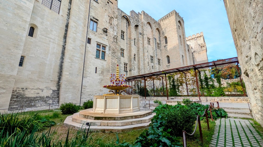 Pope John XXII, who lived in the palace, loved wine and helped make regional wines famous, leading to the creation of the nearby Châteauneuf-du-Pape (New Castle of the Pope).