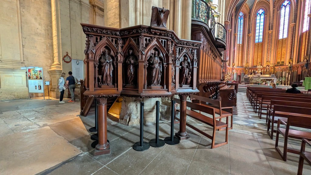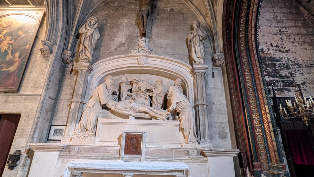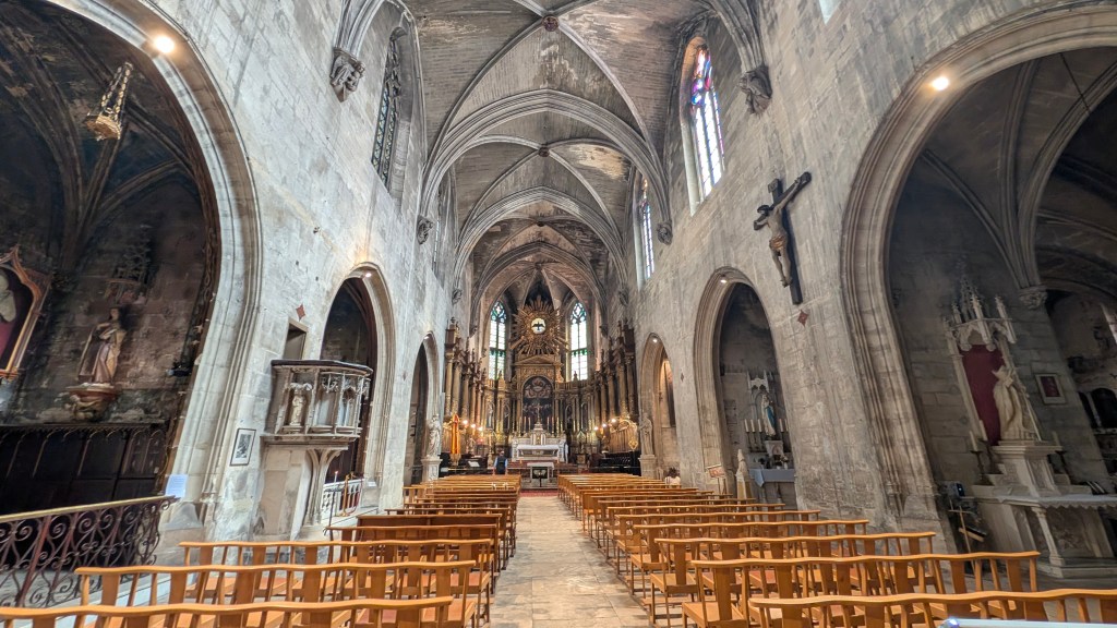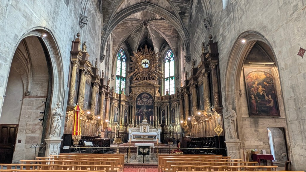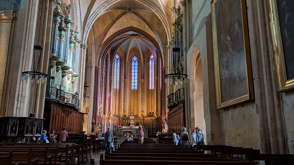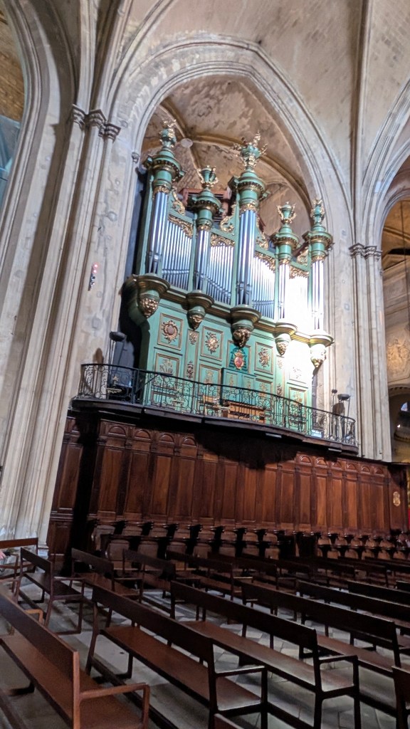 Inside, it’s not just architecture on show. The walls display works by Nicolas Froment, Jean Daret, and Louis Finson, a follower of Caravaggio known for his dramatic flair. One standout treasure is a set of 16th-century tapestries, originally woven for Canterbury Cathedral and brought to Aix long before international art loans became the norm. To achieve visual symmetry in the Baroque nave, a real organ is paired with a second, non-functional “dummy” organ.