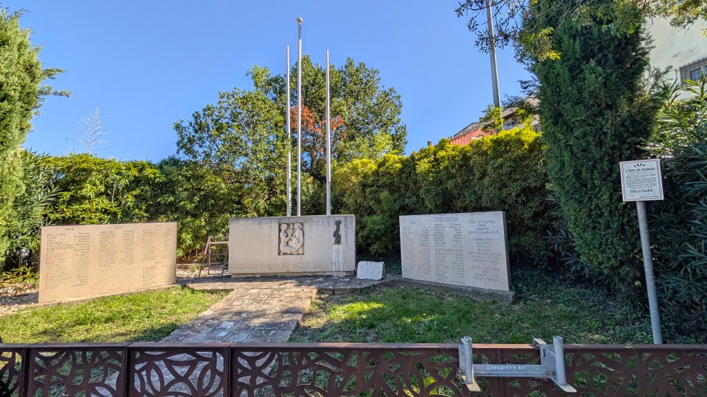 And paused in front of the monument with inscribed names of fallen soldiers from World Wars I and II. The memorial honors soldiers who died for France in Indochina, Morocco, and other theaters of war.