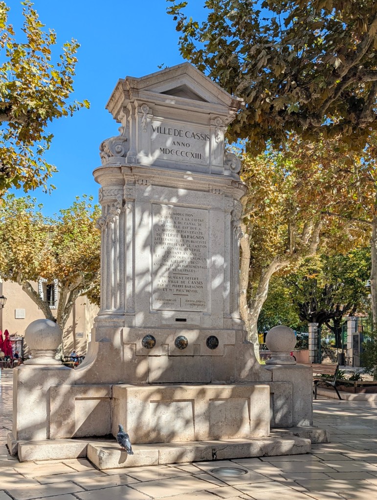 In Baragnon Square, dedicated to the city of Cassis, is a monument inaugurated in 1913 to commemorate the city’s connection to the Marseille Canal.  The structure serves as both a memorial and a decorative fountain.  It was donated to the city by Pierre Baragnon and Paul Revoil, whose names are inscribed on the monument.