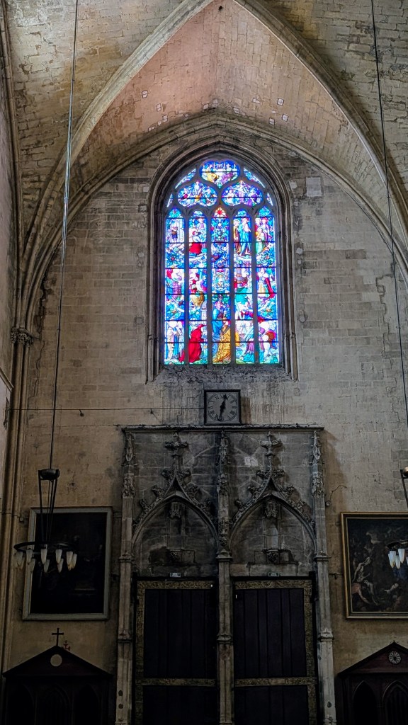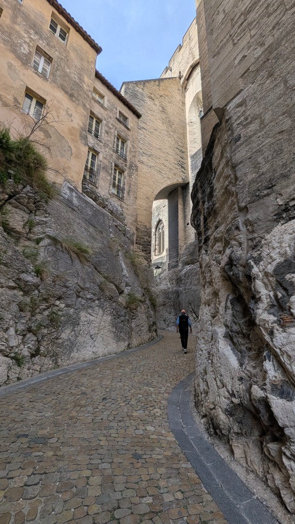 After lunch in a cafe in Place de l’Horloge we made our way back to the Palace of the Popes through the narrow winding streets of Avignon.