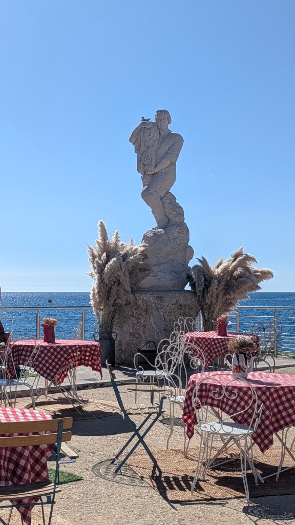 Overlooking the harbor stands the Statue of Calendal. It depicts Calendal, a humble anchovy fisherman who is the hero of a famous poem by Frédéric Mistral.  The original statue created in 1930 was destroyed in 1944, and the current monument was inaugurated in 2000.