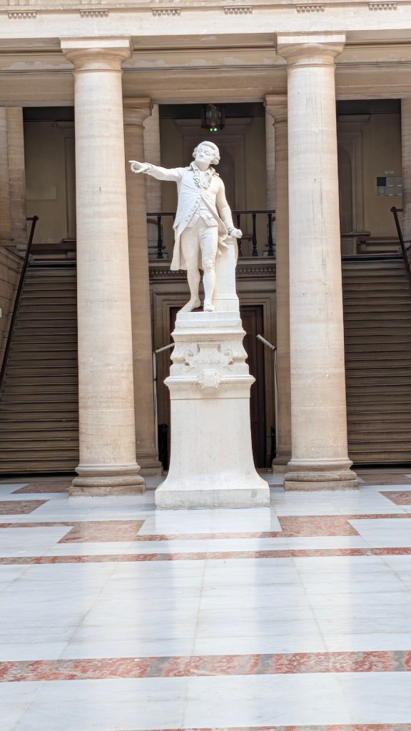 with a central statue of Honoré Gabriel Riqueti, comte de Mirabeau (1749–1791), a prominent orator and leader during the early stages of the French Revolution.