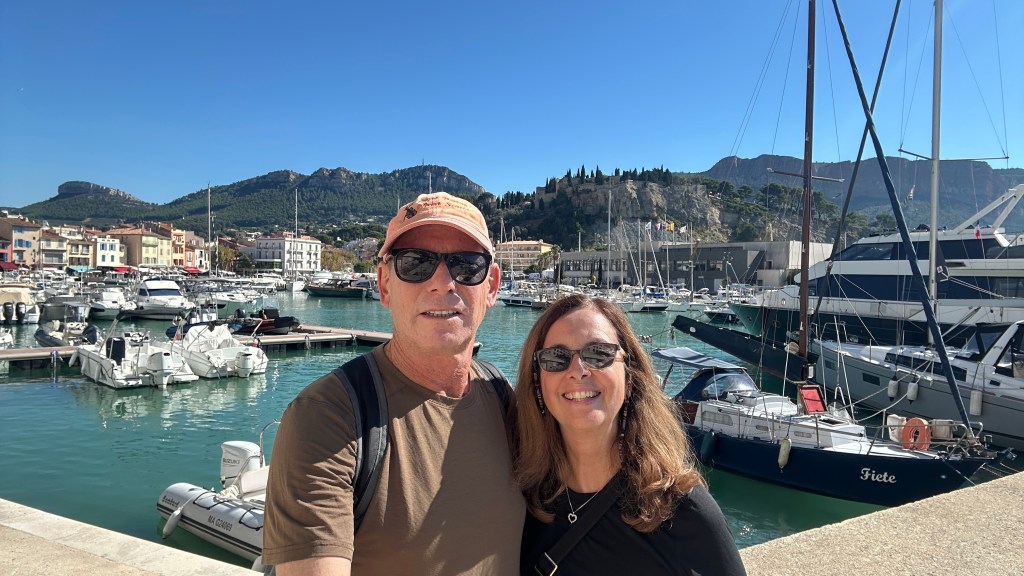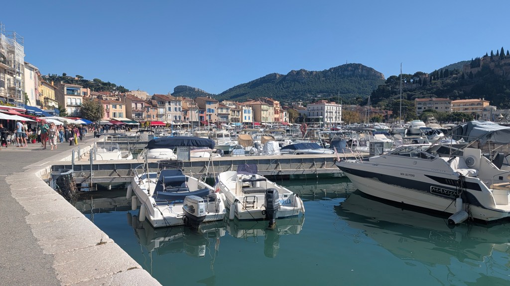 The next morning we decided we had tired of the cities and were ready for a port town. Having arrived by train in Marseilles, which we found unpleasantly large, we chose Cassis as our day’s destination. Described by author Virginia Wolf as “little paradise” in the 1920s, Cassis is a charming, historic fishing port known for its stunning calanques (limestone inlets), high cliffs, and white wine. It serves as a Mediterranean getaway with rich, ancient history. Fun fact: Stone from the Cassis quarries was used to build the foundation of the Statue of Liberty in New York.