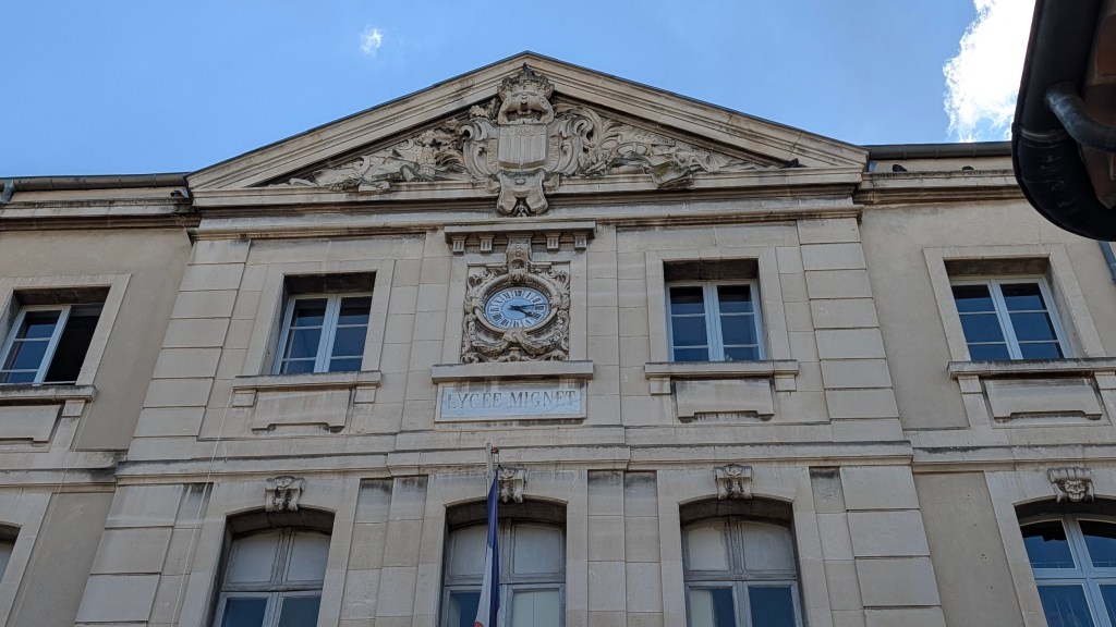 Collège Mignet (Mignet College) sits on Cardinal Street in Aix’s refined Mazarin district and owes its name to 19th-century historian François-Auguste Mignet. Originally approved as a royal college in 1603 by King Henri IV, it started off under the scholarly gaze of the Jesuits. When they were disbanded in 1773, the Doctrinaire Fathers stepped in, until they too were shown the door during the Revolution. It reopened during the Napoleonic shuffle, briefly bore the monarchical badge as “Bourbon College,” and eventually landed in city hands by 1878. By then, it had been housed in not one but two former convents: Benedictine and Ursuline, stitched together to form its current façade. That architectural patchwork still stands today, with parts declared historic monuments, including the Benedictine entrance and a grand staircase.