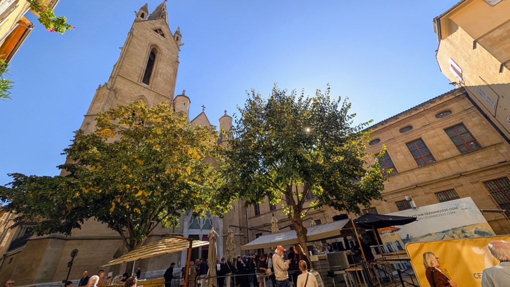 Having had our fill of the Palais des Papes, we got back in our car and headed to our next destination: Aix-en-Provence. Founded by Romans in 123 B.C. as Aquae Sixtiae (a spa town denoted for its thermal baths), it is now famous as the “City of a Thousand Fountains” and the birthplace of painter Paul Cézanne (1839-1906) as evident by the first thing we saw upon emerging from our car.
