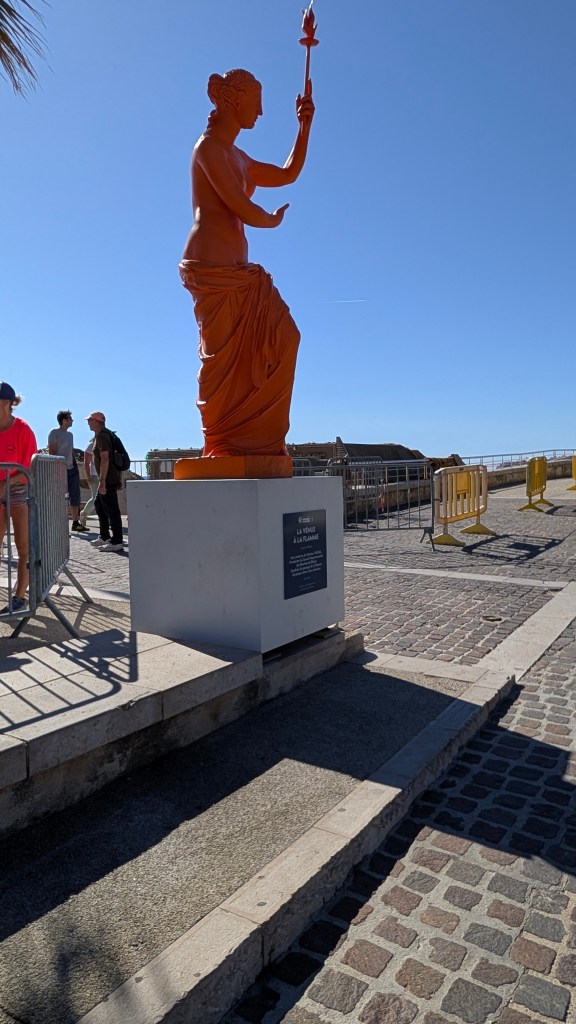 Adorning the port is a modern interpretation of the Venus de Milo statue, specifically titled “La Vénus à la flamme” (The Venus with the Flame) created in 2024 in Cassis to celebrate the Olympic Games.