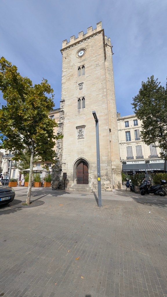 Tour Saint-Jean is situated at Place Pie in the historic center of Avignon. Constructed in the 14th century, the tower originally served as part of the city’s defensive walls.  It is a stone tower featuring a clock near the top and Gothic-style window openings.