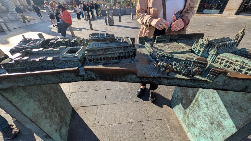As we walked toward Place de la Comédie, Sarah explained some of the city’s history. Bordeaux, founded as Celtic Burdigala around 300 BC, became a flourishing Roman trade hub and capital of Aquitania. In the middle ages (approximately 1100-1400) the city was controlled by the English. For centuries there was a wall around the city both for protection and to ensure collection of duties. Most of the wall was destroyed during the 18th century building projects. The 17th century was the height of the city’s prosperity owing to its central location for trade of wine from local wineries, slaves from West Africa, and sugar, cocoa, and coffee from Haiti. Sarah showed us a miniature model of the city.