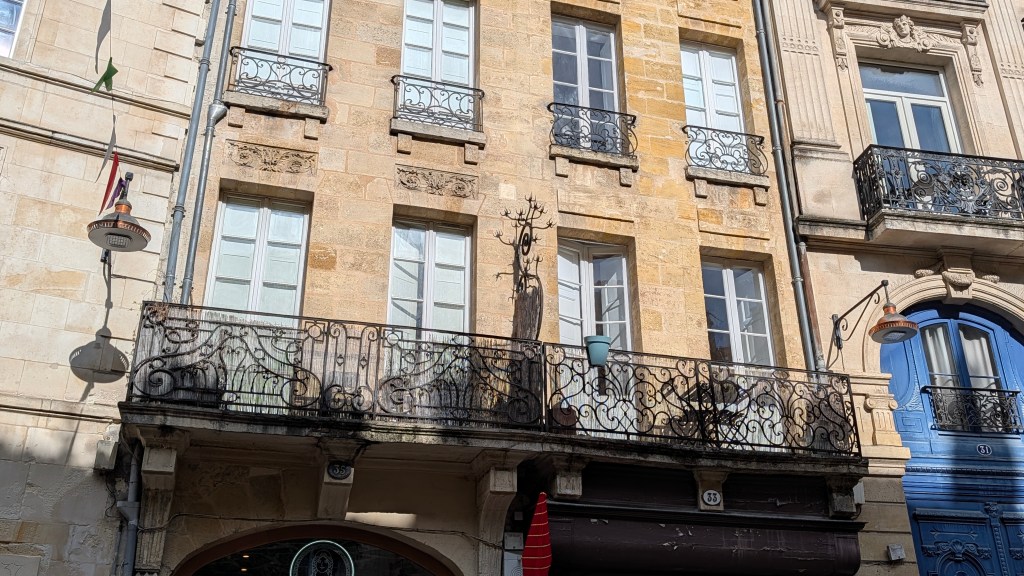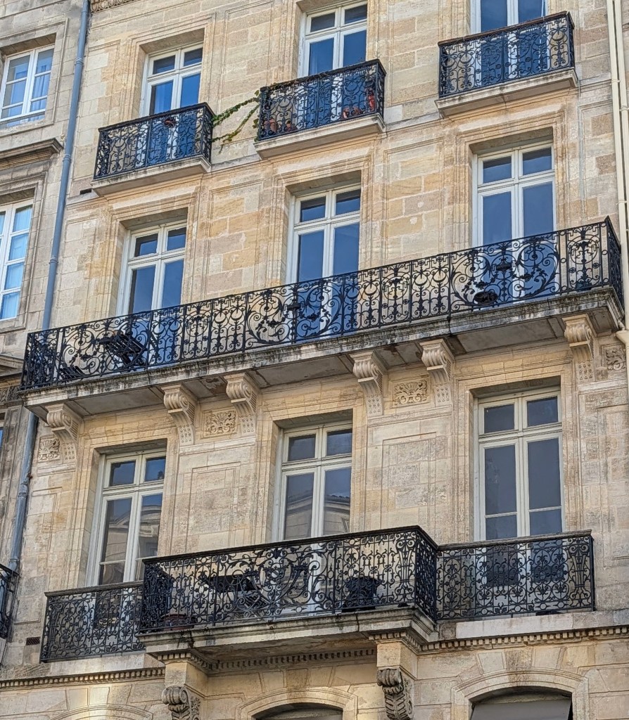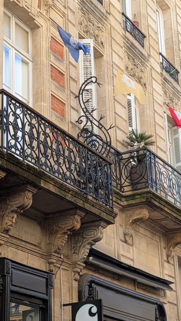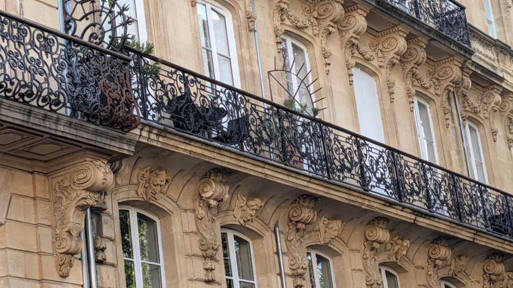 And as in Paris, the grill work on the terraces can be ornate. The claim here in Bordeaux is that decorating with grillwork initiated here prior to its adoption in Paris.