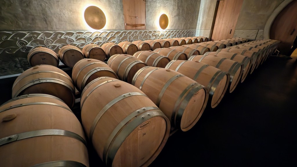 Our guide Camille explained that the estate was revolutionized by Baron Philippe de Rothschild, grandfather of the current owners, from 1922, introducing on-site bottling and creating a world-class reputation. He decided to change the labels yearly, hiring an artist for a unique design each year. The estate has been in collaboration with Robert Mondavi at Opus One since 1979.