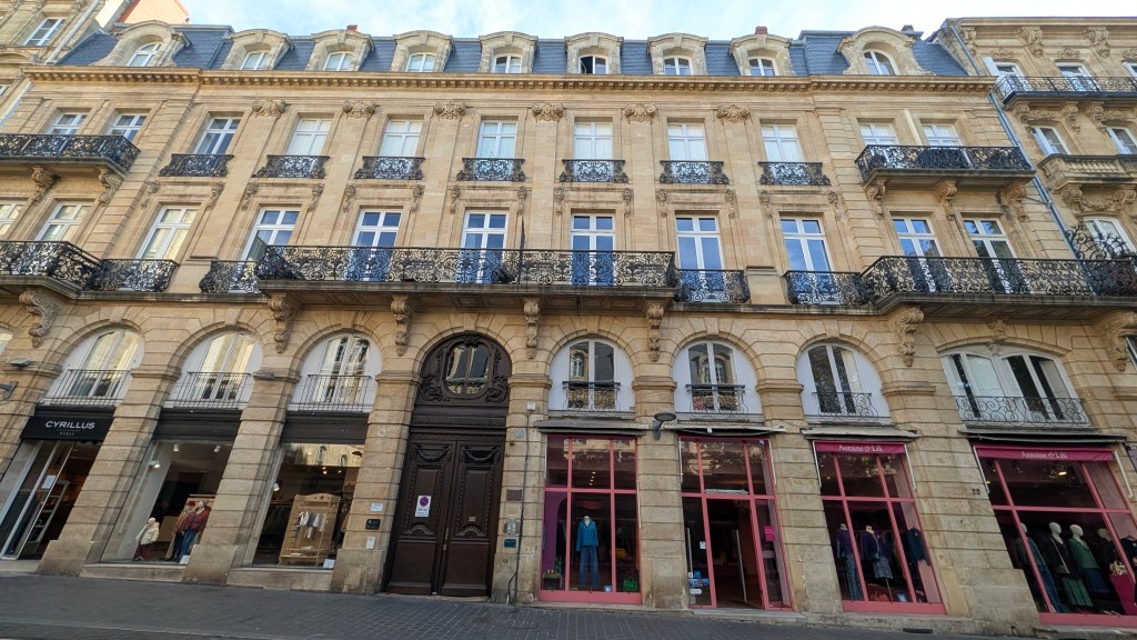 We passed the Bourse Maritime (Maritime Stock Exchange). Built between 1921 and 1925, it was designed as a replica of the central pavilion of the nearby 18th-century Place de la Bourse. The building served as a hub for the city’s maritime commerce and is now a significant landmark in the UNESCO World Heritage-listed historic center of Bordeaux.
