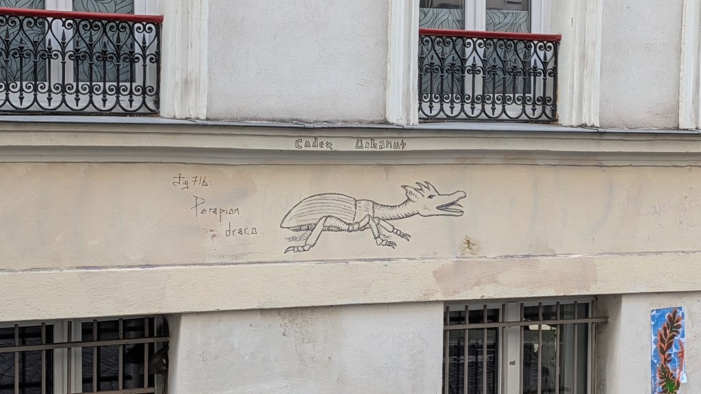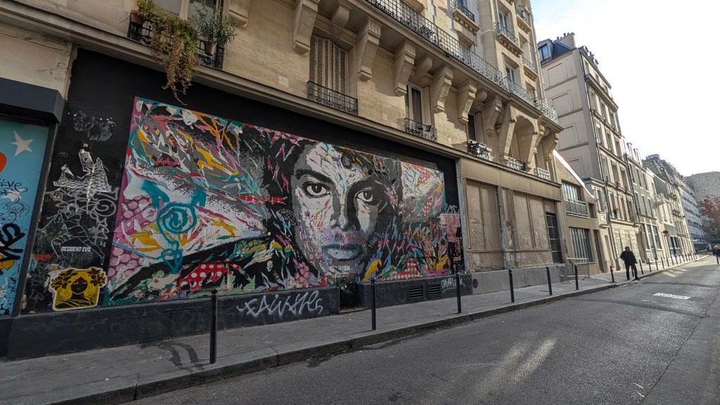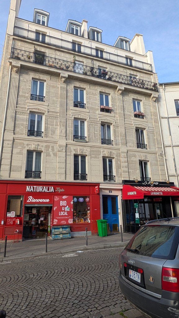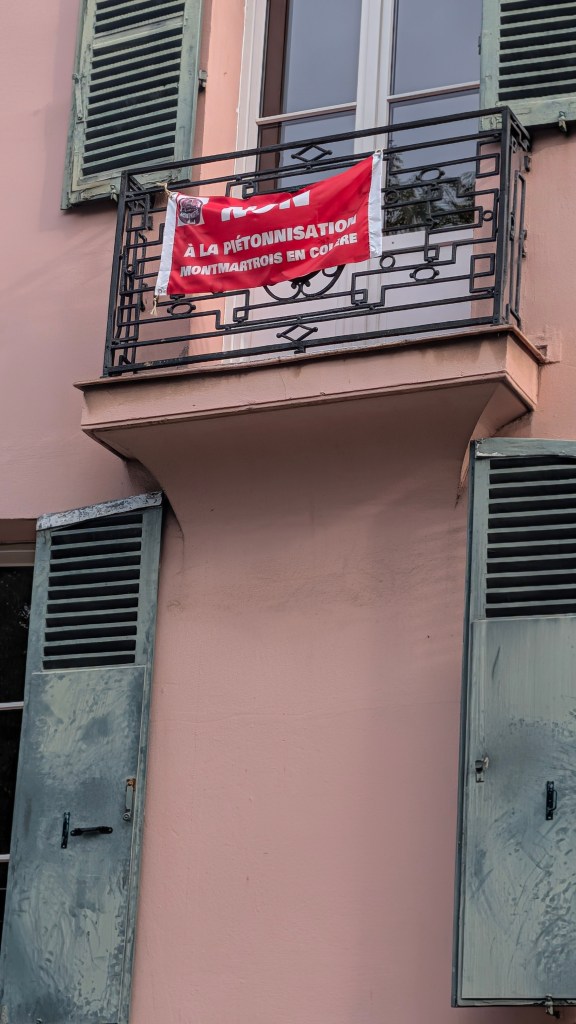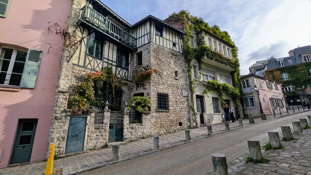 The street on which we were standing had a city wall, which was built for the purpose of taxes. Eating and drinking outside the city wall became popular to avoid said taxes. In 1860 with the reconstruction of the city, the wall came down, but it remained less expensive to live in this arrondissement, which attracted artists along with the working class.