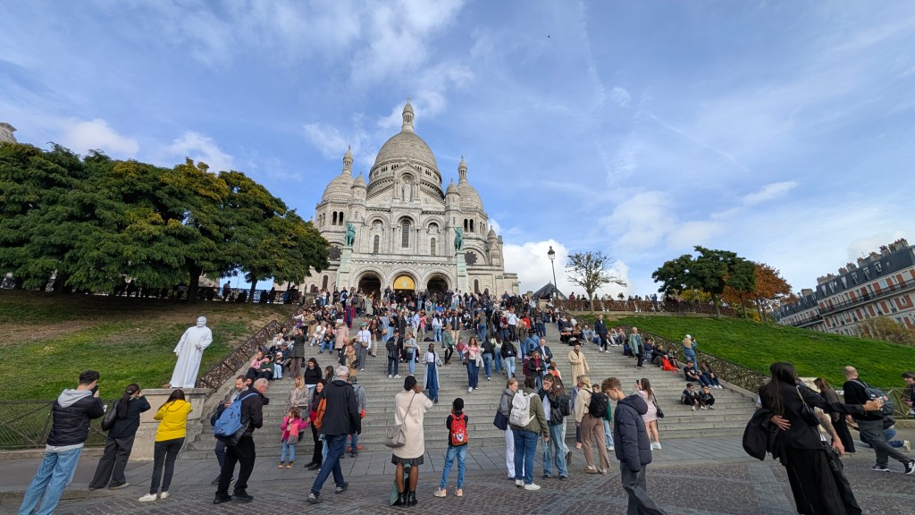 At the very top we found Sacré-Cœur Basilica (Basilica of the Sacred Heart) situated at the summit of the Montmartre butte, the highest point in the city.