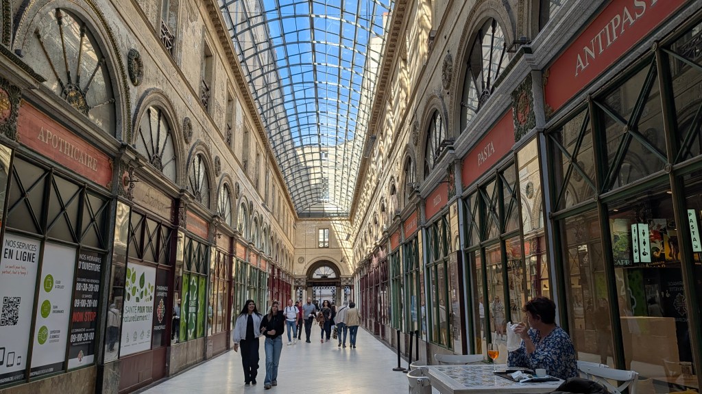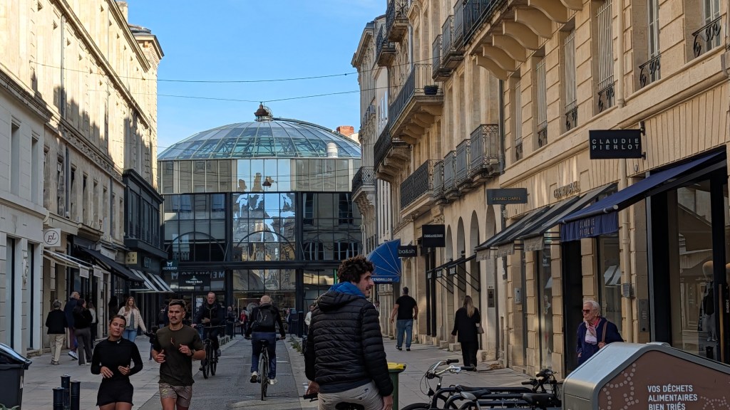 We visited La Galerie des Grands Hommes, a distinctive, circular shopping center in central Bordeaux, which opened in 1991 on the site of a former 19th-century metal market. It is located within the upscale “Golden Triangle.”