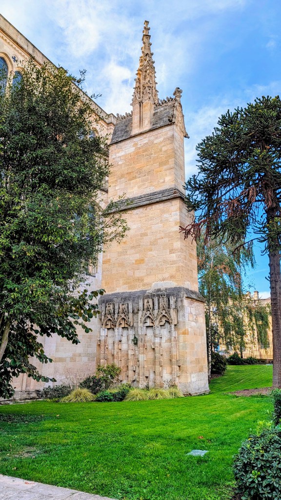 The Tour Pey-Berland, built in the 1400s, stands separately from the main cathedral to avoid vibrations from its massive bells damaging the main structure.