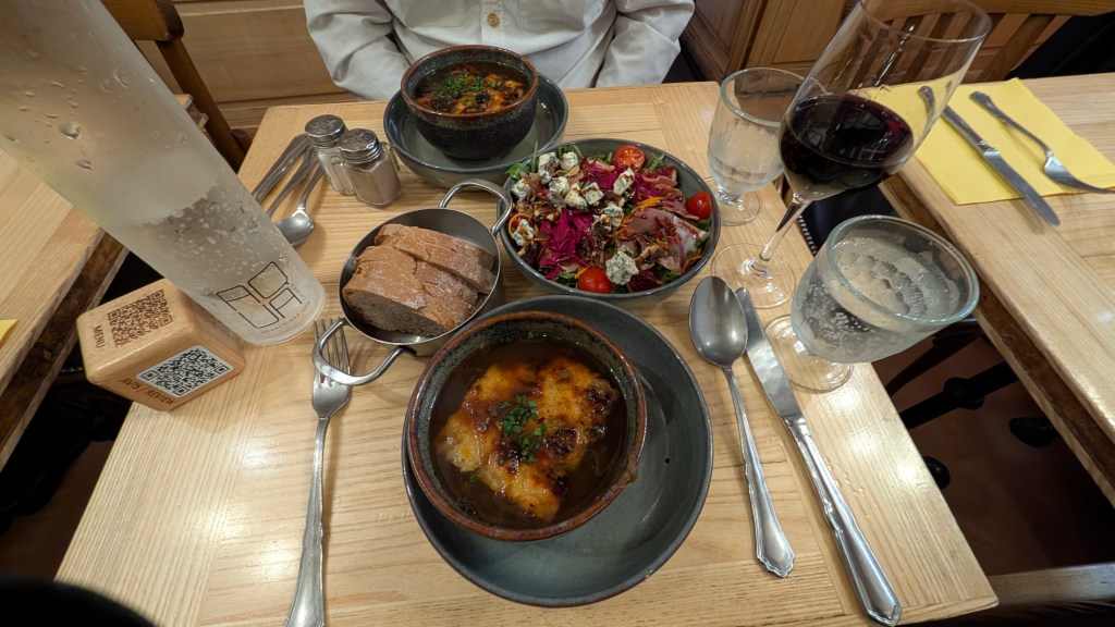 Having been in France at this point for nearly 3 weeks, and not yet having had a bowl of onion soup, it was time.