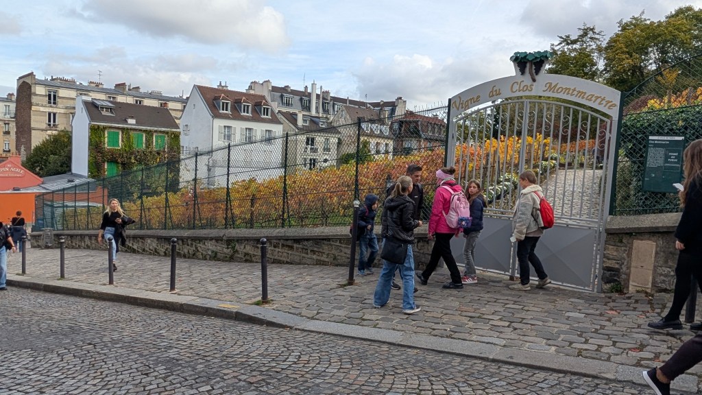 There remains one last vineyard in Montmartre. Prior to the Revolution, vineyards here were owned by the church. In 1789 most of them were destroyed. The area became slums until the 1930s when the government took the land back to clean it up. Each year now there is a grape harvesting party to pick the grapes. The wine is sold for €50 and is terrible, but the proceeds go to charity for the neighborhood.