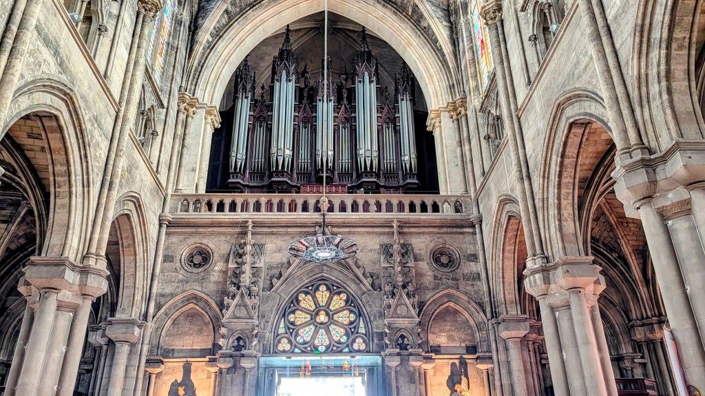 The organ at the Église Notre-Dame de Bordeaux, built in 1785 by Godefroy Schmidt, is housed in what is considered the most beautiful 18th-century mahogany and oak case in the region. This historic instrument features four manuals, 58 stops, and approximately 4,238 pipes, offering exceptional sound tailored for the church’s amazing acoustics.