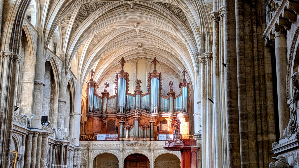 The 18th-century organ case is one of the largest in France, housing a heavily utilized organ,