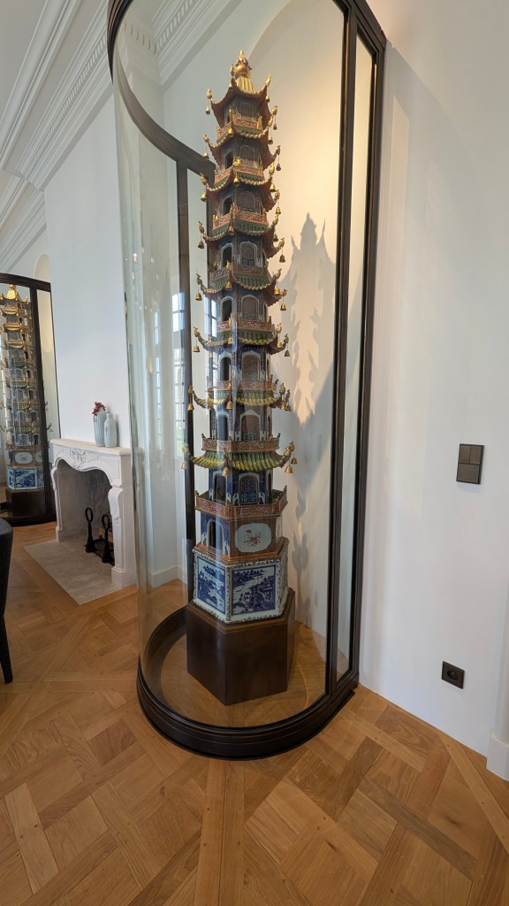 The 14th century pagodas were a gift from the emporer to his parents. There are only 6 of these in the world; the other 4 are in Buckingham Palace.