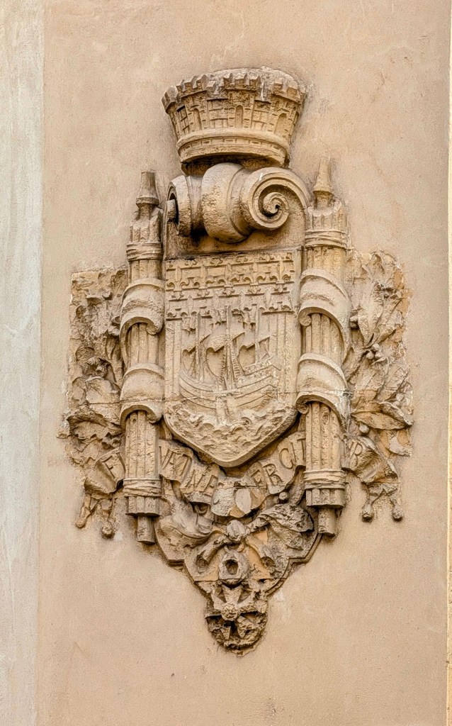 The coat of arms of Paris features a white ship (an ancient merchant vessel) on a red field, with a blue upper section containing gold fleurs-de-lis, symbolizing the city’s maritime history and royal ties, often accompanied by the Latin motto Fluctuat nec mergitur(Tossed but not sunk). Adopted in 1358 and officially registered in 1699, this emblem represents the city’s resilience. It can be seen on buildings