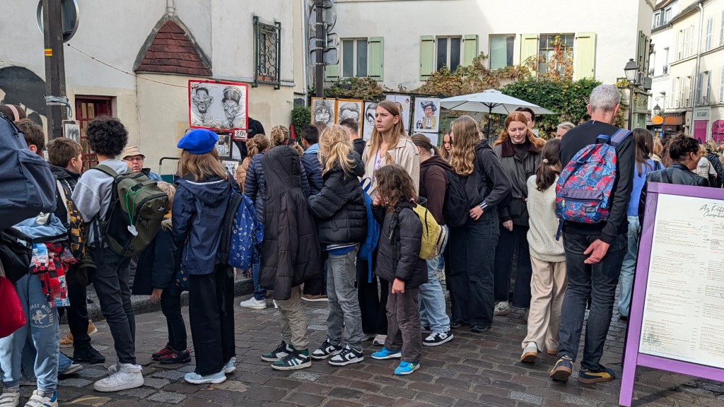Near the top we entered Place du Tertre, a famous, albeit touristy, square filled with craft shops and artists painting portraits and landscapes.