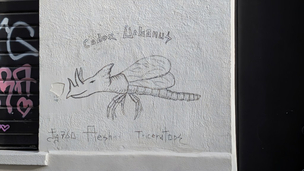 As we climbed the hill Elise started talking about all of the street art in the neighborhood, some of which are large murals, others not so large.