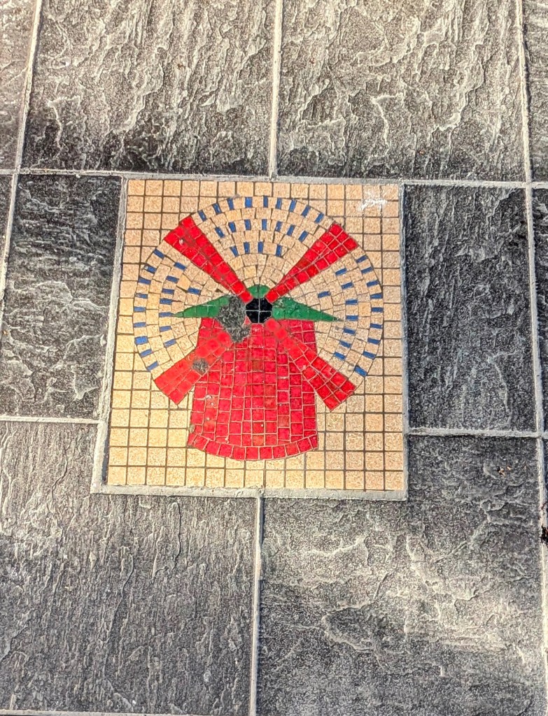 After settling in, we headed out into the late afternoon to explore the neighborhood. As we headed up our street, we spied a windmill above the park at the top of the street.