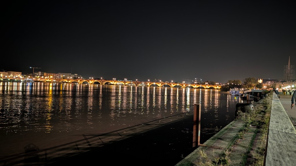 Having stuffed ourselves, we decided it was prudent to walk it off. We headed to the river for the night views.