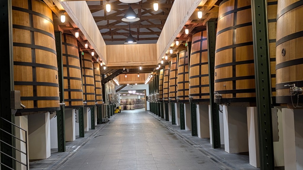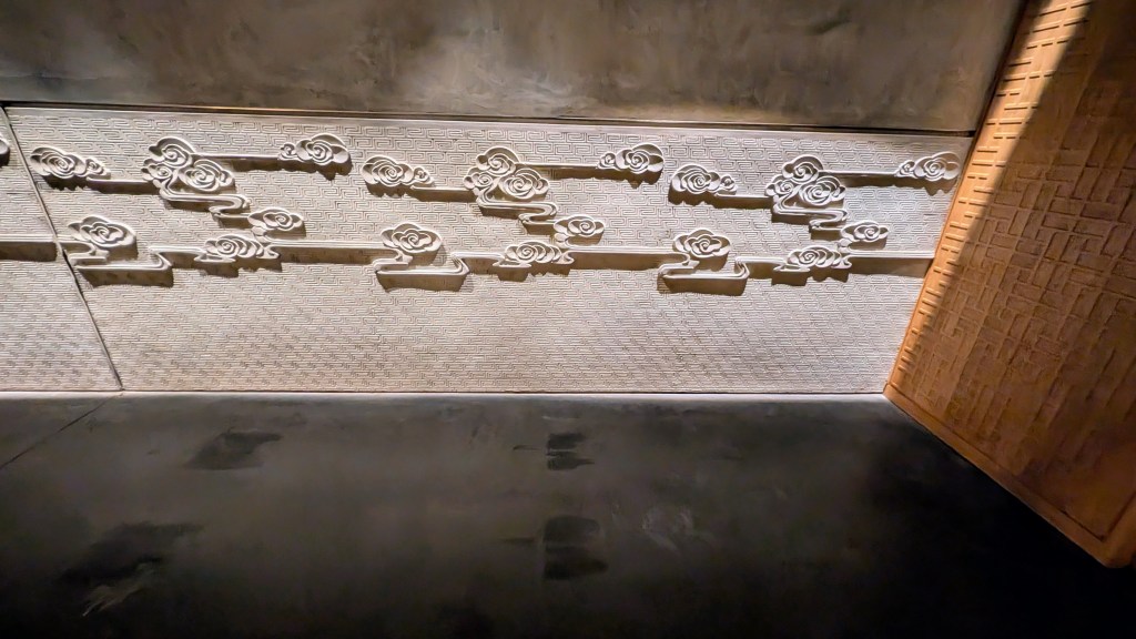 The decor on the walls of the barrel rooms is of Chinese influence. Water is on the walls of even years, as above; wind is on the walls of the odd years, as below.