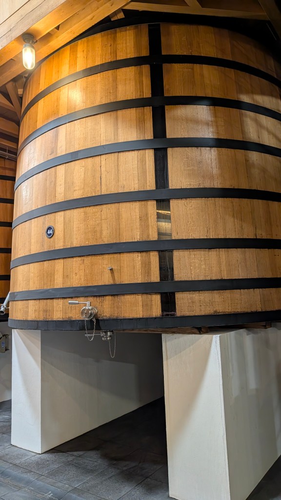 Pascal took us up to the top of the vats and explained that here, like most of the wineries we have visited in Bordeaux, gravity is used to fill the tanks and crush the grapes.
