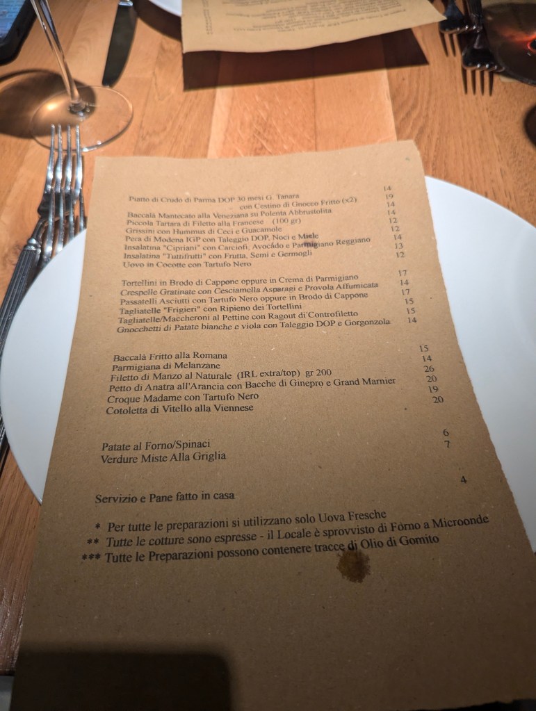 Next we were invited into the dining room. We were seated family style at long tables and given the tasting menu for the night.