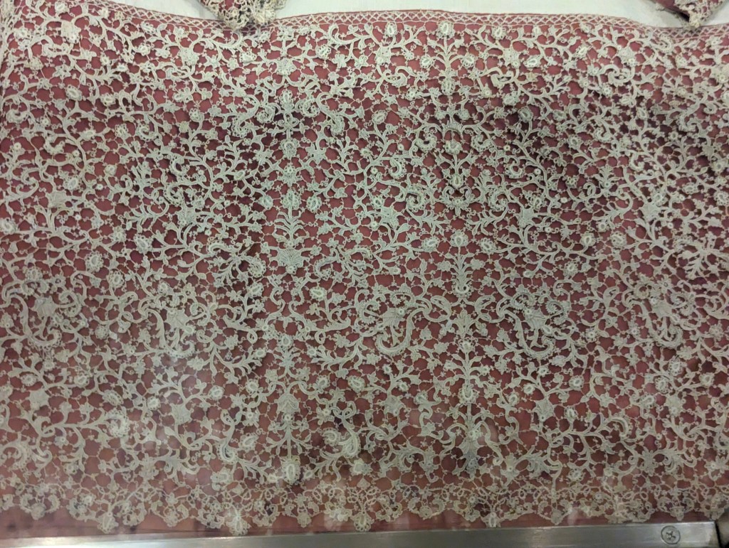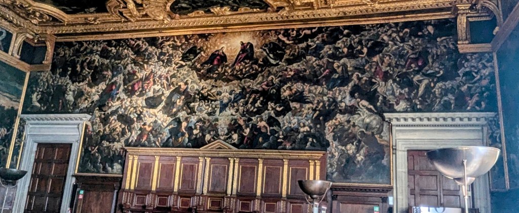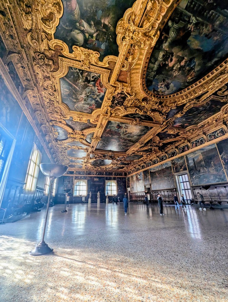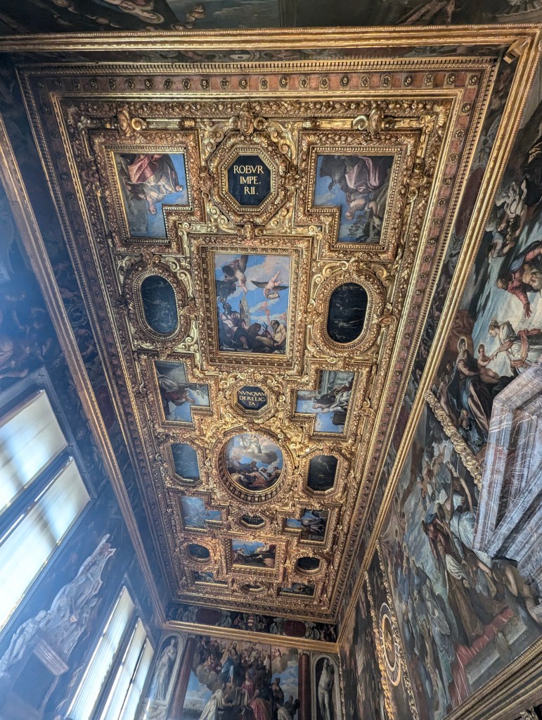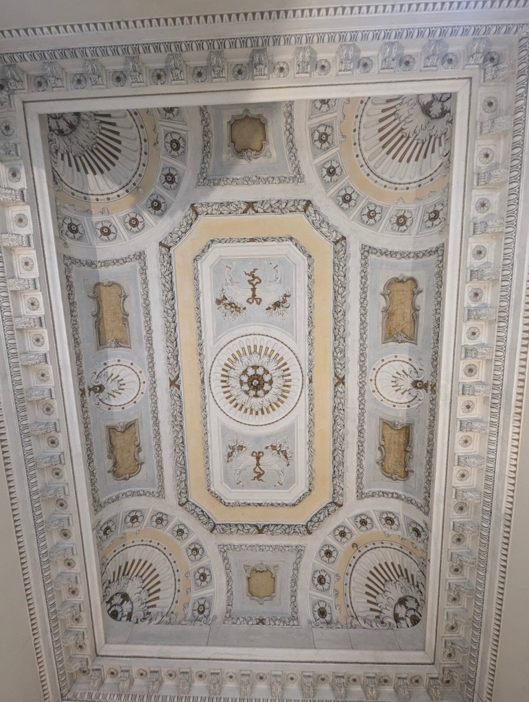 As we wandered inside, there just happened to be a tour in English about to start, so we joined. The wallpaper is all hand painted.