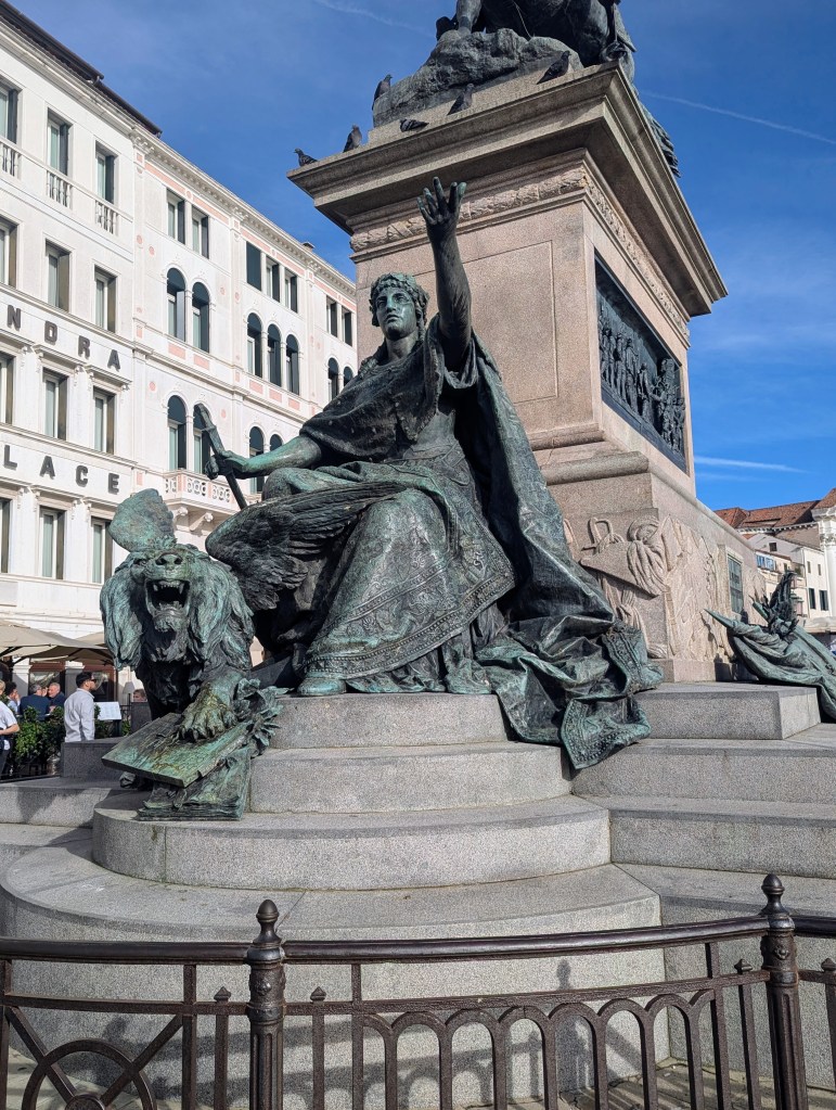 But the statue that amused us most was this one that despite the sign was never without folks young and old atop it when we passed.