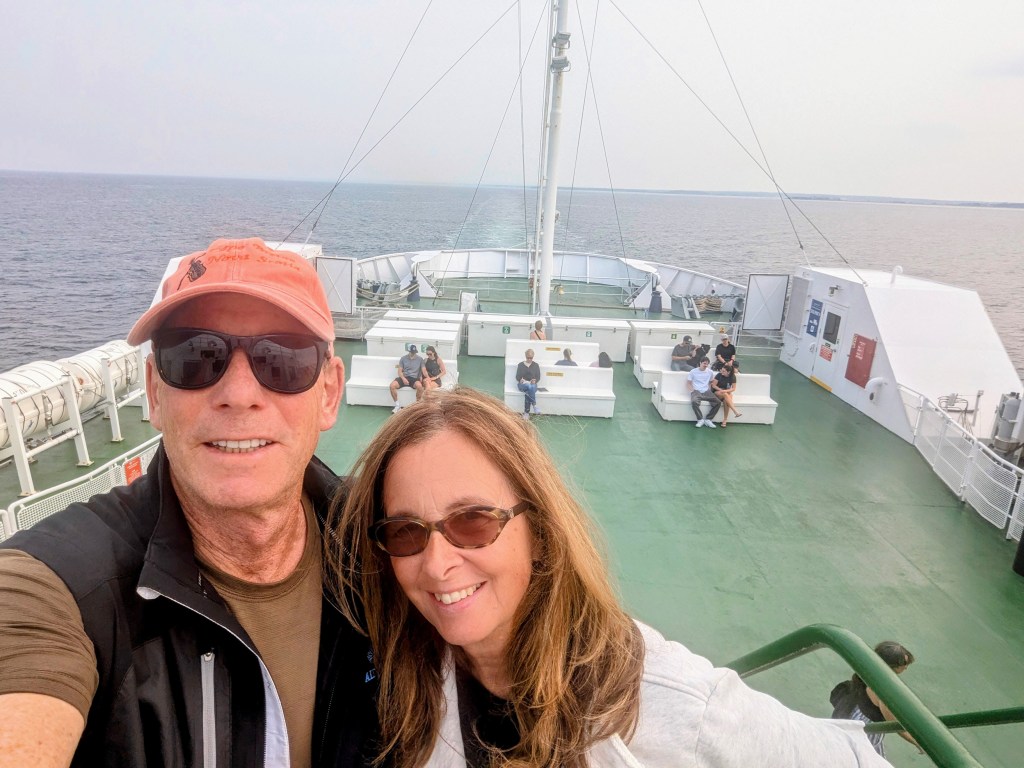 The weather on the return ferry was much more gray than it had been on our first crossing. So we meandered inside for yet another bowl of yummy seafood chowder and were happily surprised by the entertainment we found there: a 70s cover band.