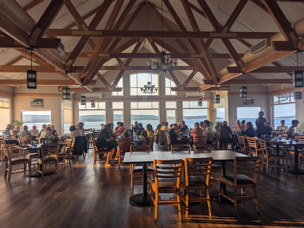 After a good night’s rest, we ventured out to Louisbourg, a small fishing village with a population under 1000. The harbour had been used by European mariners since at least the 1590s, when it was known as English Port and Havre à l’Anglois, the French settlement that dated from 1713 in a fortress, more on that later. We stopped for lunch at North Star, a resort recently purchased and now operated by international designers Colin and Justin, whose shows have aired on HGTV and Cottage Life in Canada. We had watched the week prior, a 4 hour documentary of their purchase and subsequent renovation of North Star called ‘Colin and Justin’s Hotel Hell’.